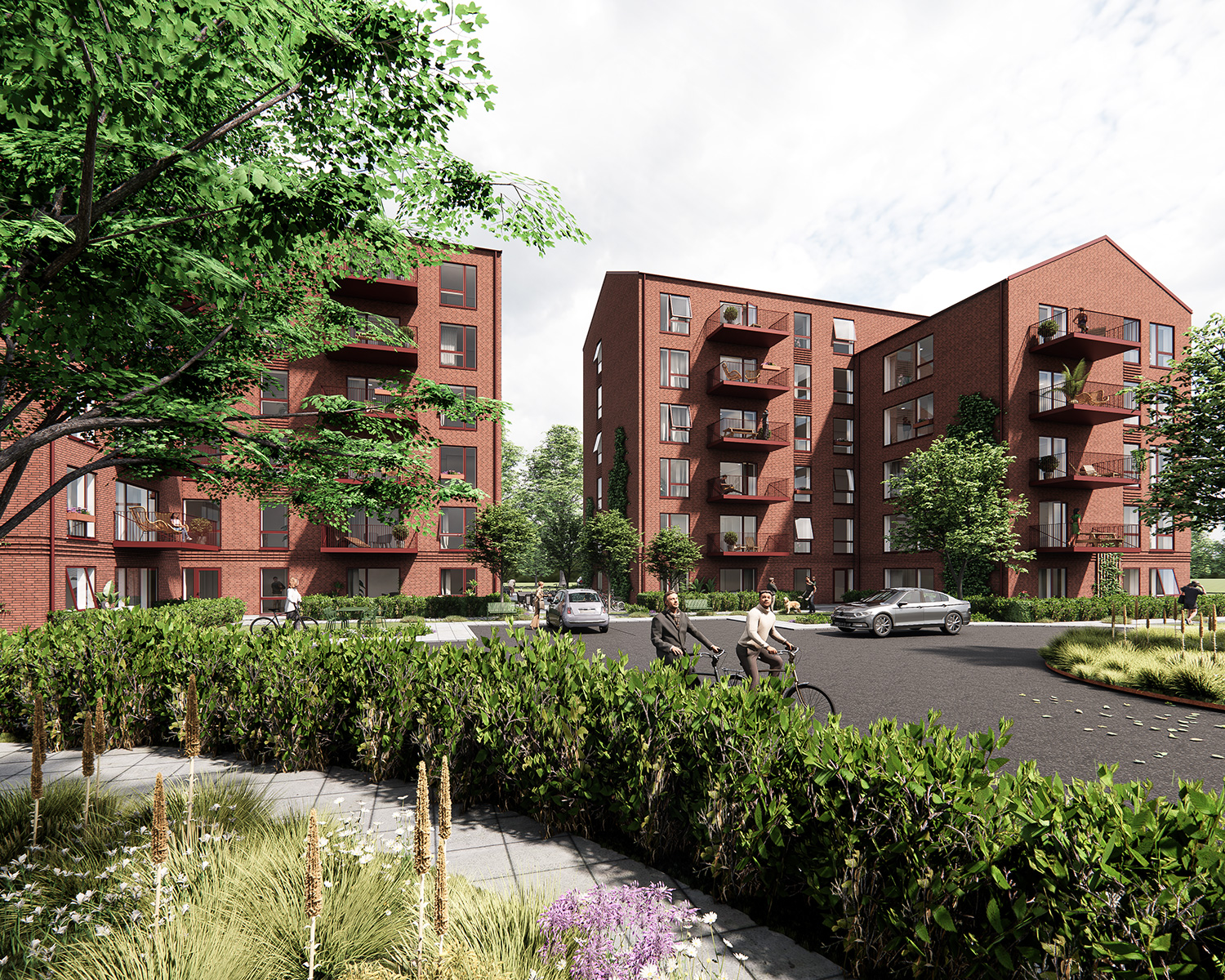 De 16 forskellige blokke er placeret i klynge i et naturskønt område i Vestbjerg og samlet kommer der 57 boliger.