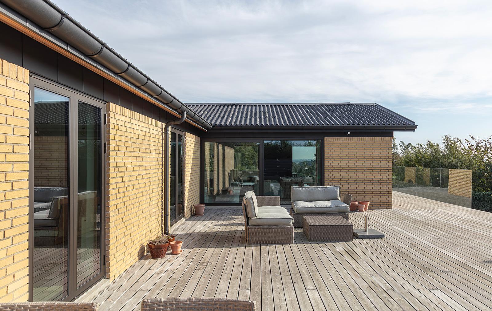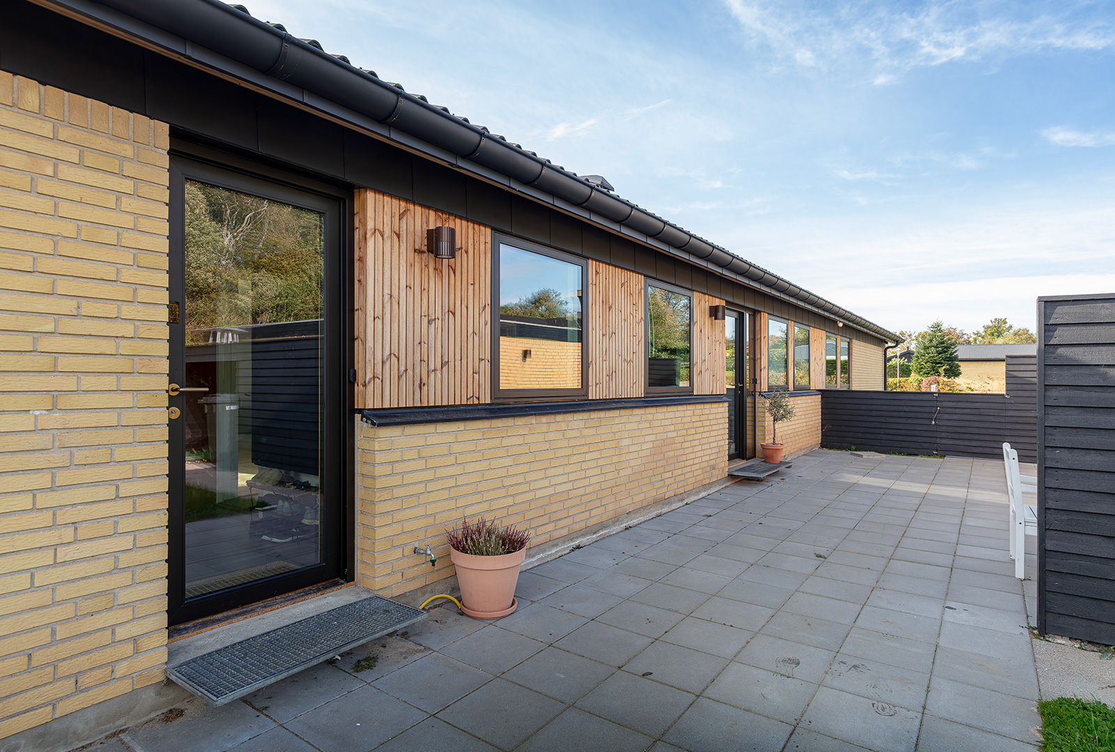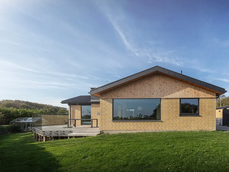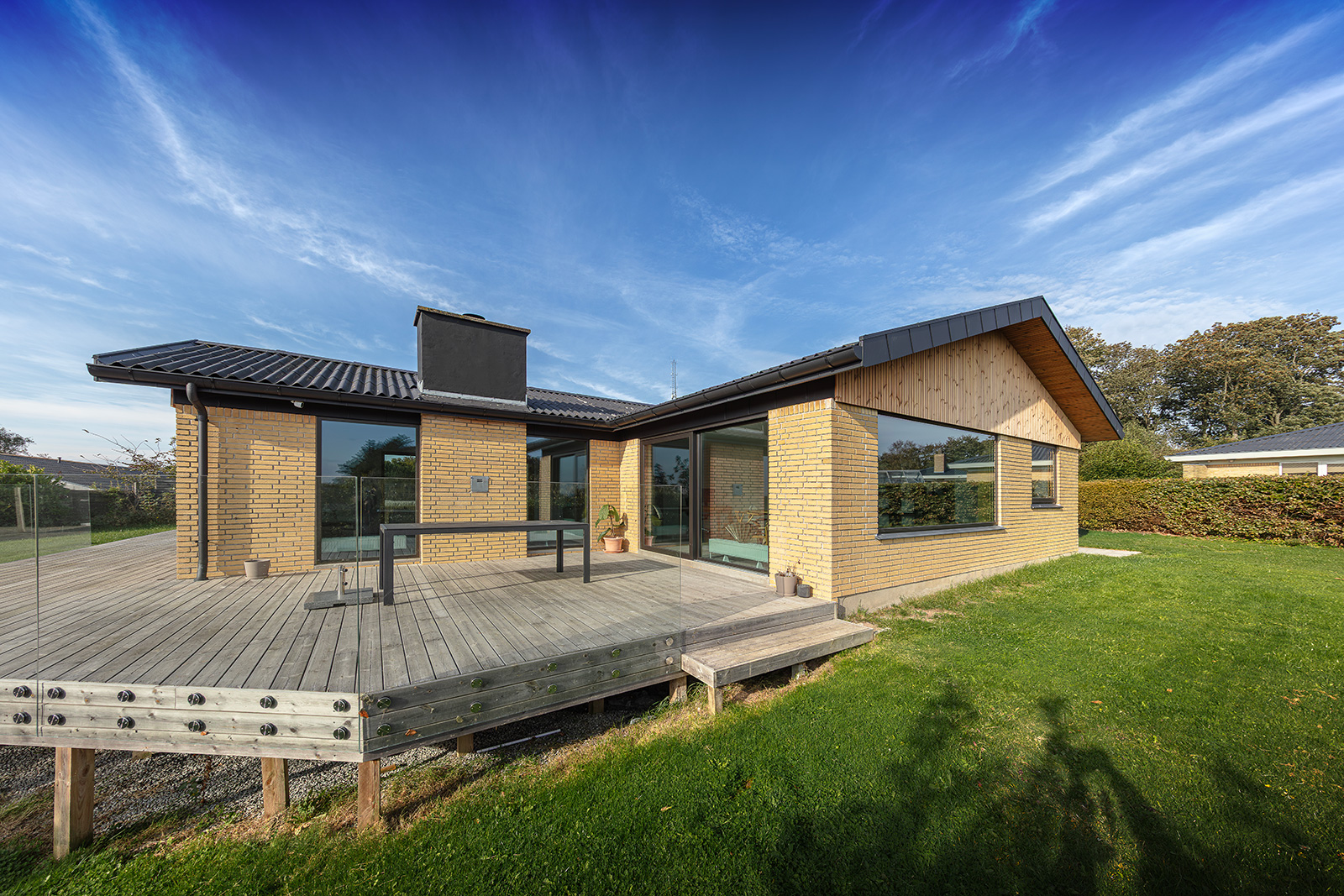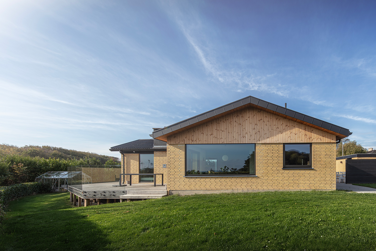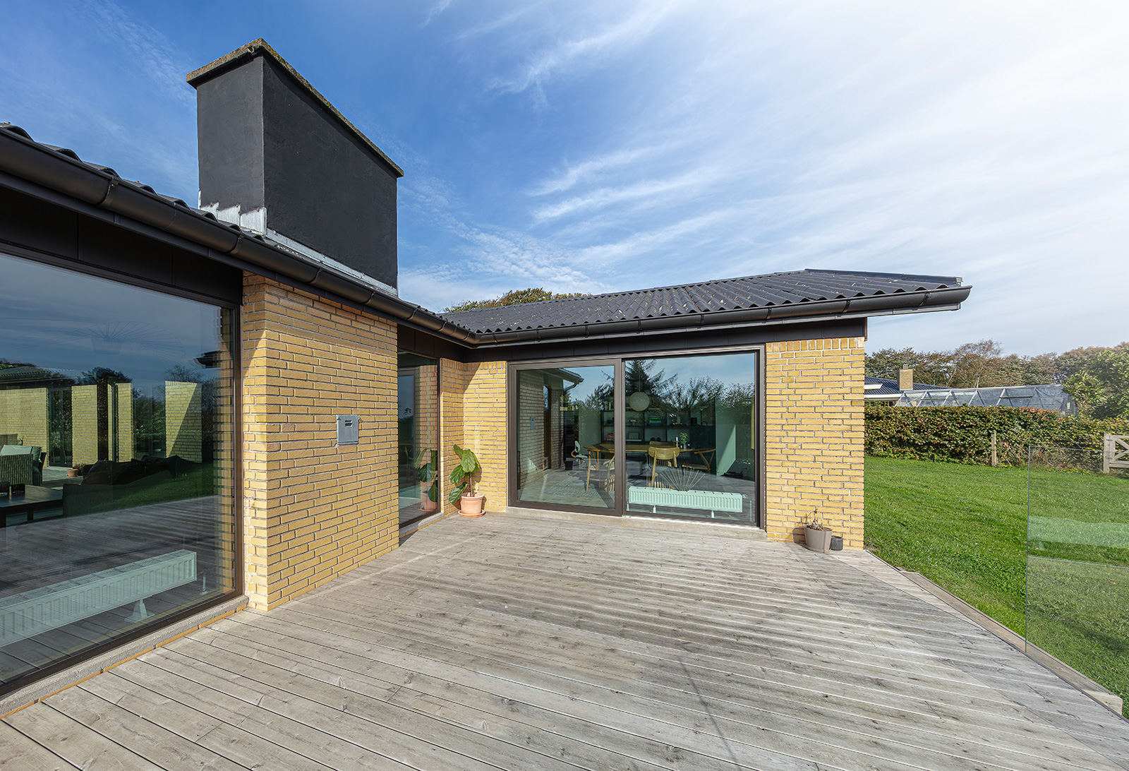 En klassisk 70’er villa, som har fået en eksklusiv vinduesopgradering. Smukke egetræsløsninger har skabt et varm udtryk og åbnet op for en smuk udsigt i stuen.