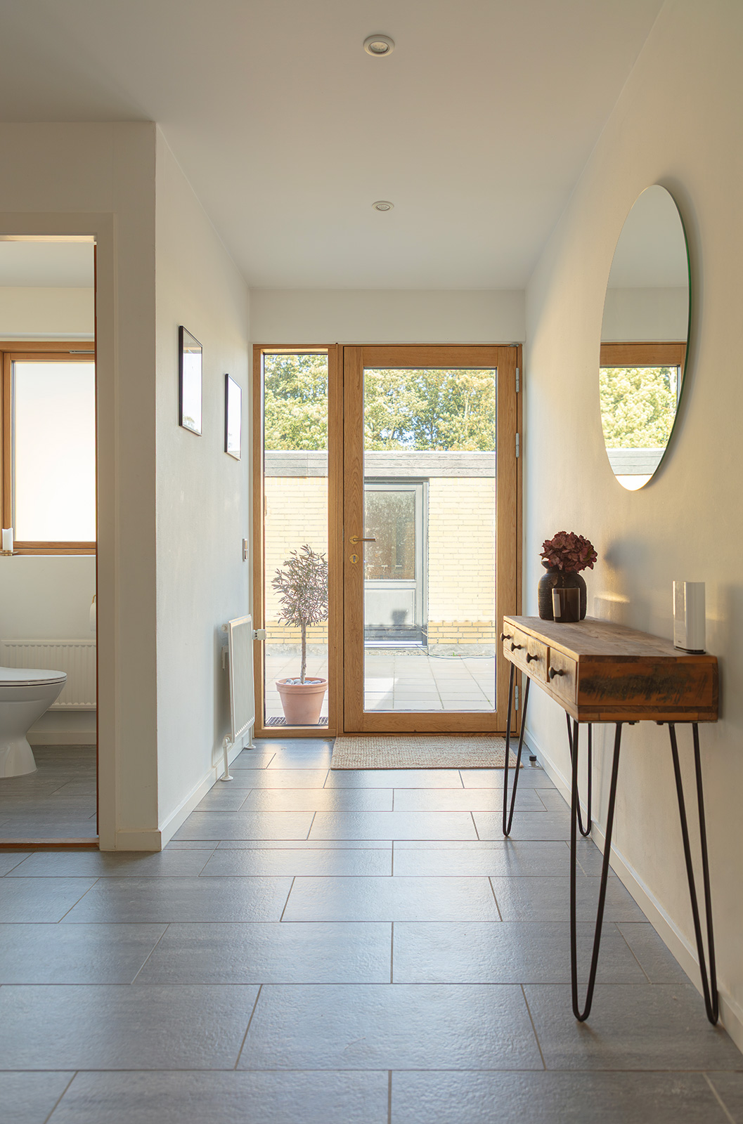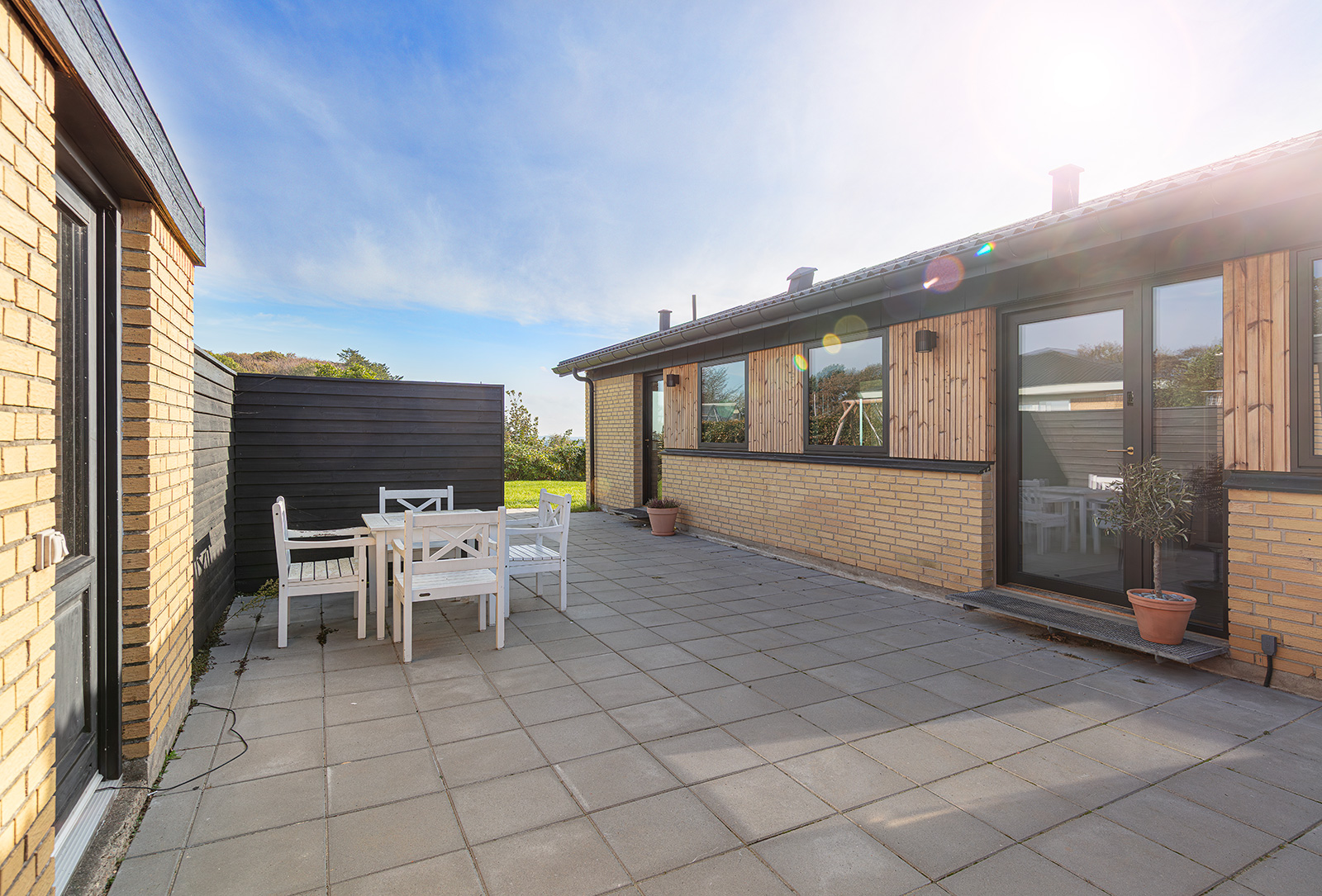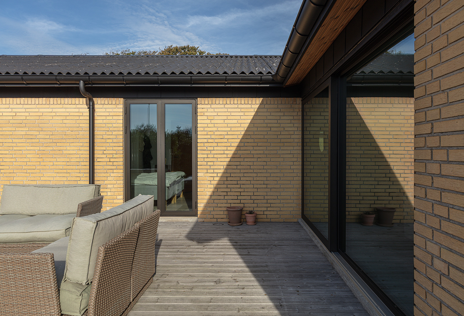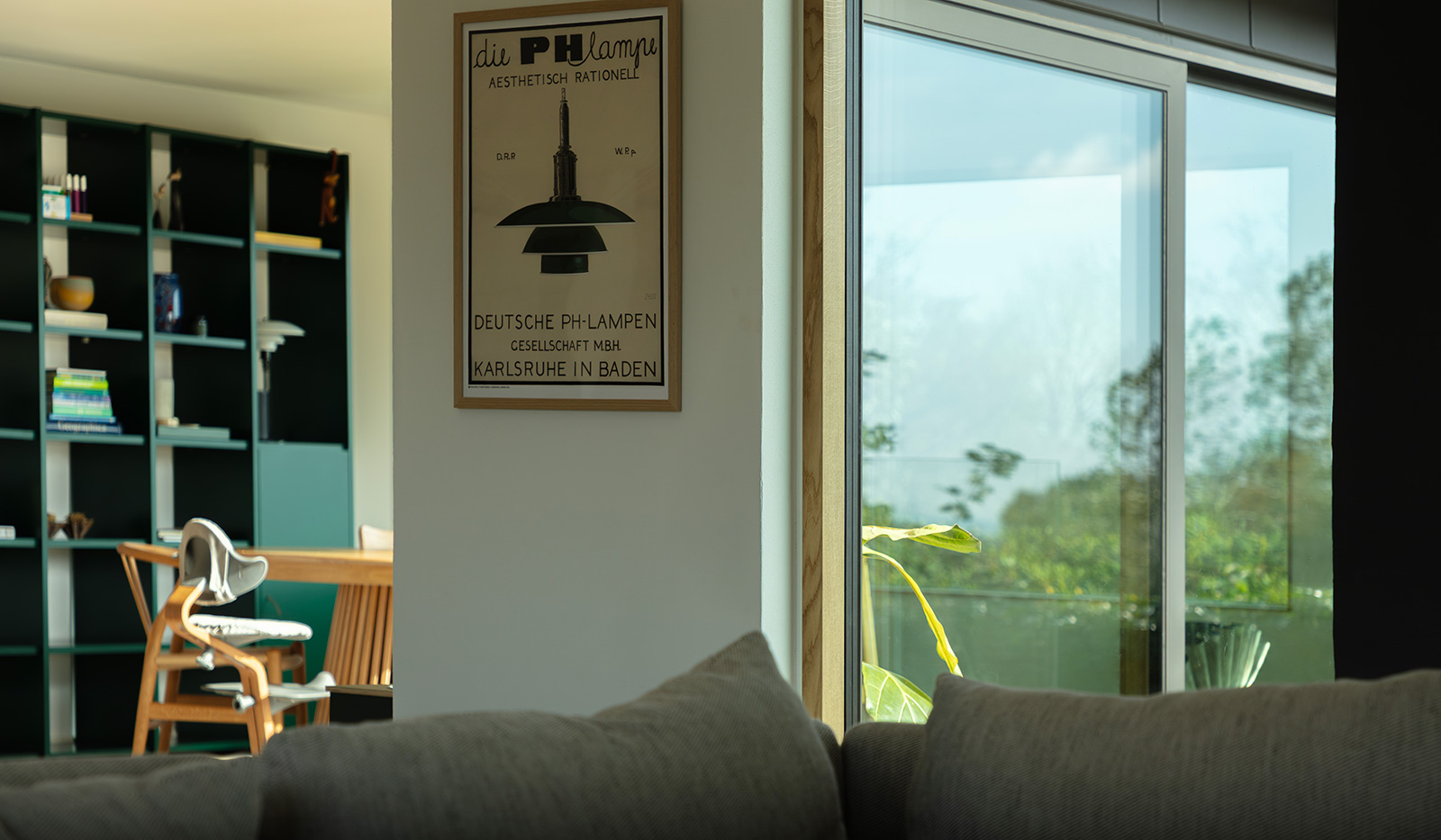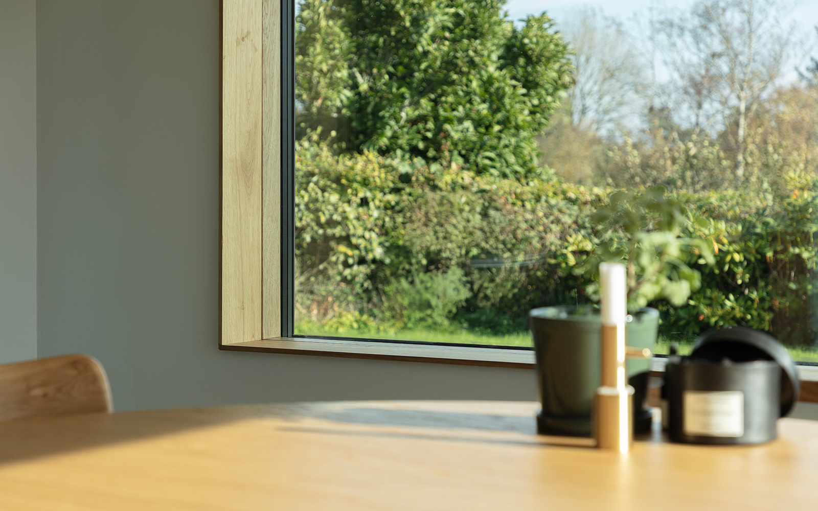 En klassisk 70’er villa, som har fået en eksklusiv vinduesopgradering. Smukke egetræsløsninger har skabt et varm udtryk og åbnet op for en smuk udsigt i stuen.
