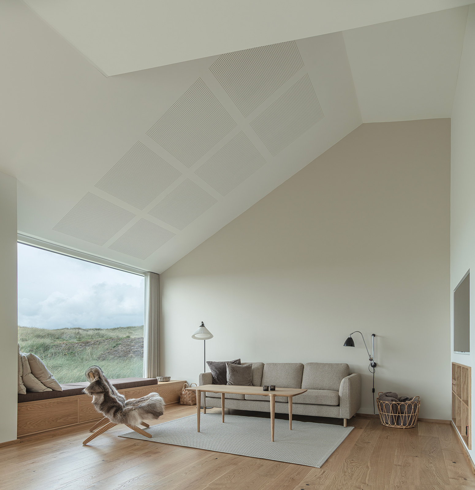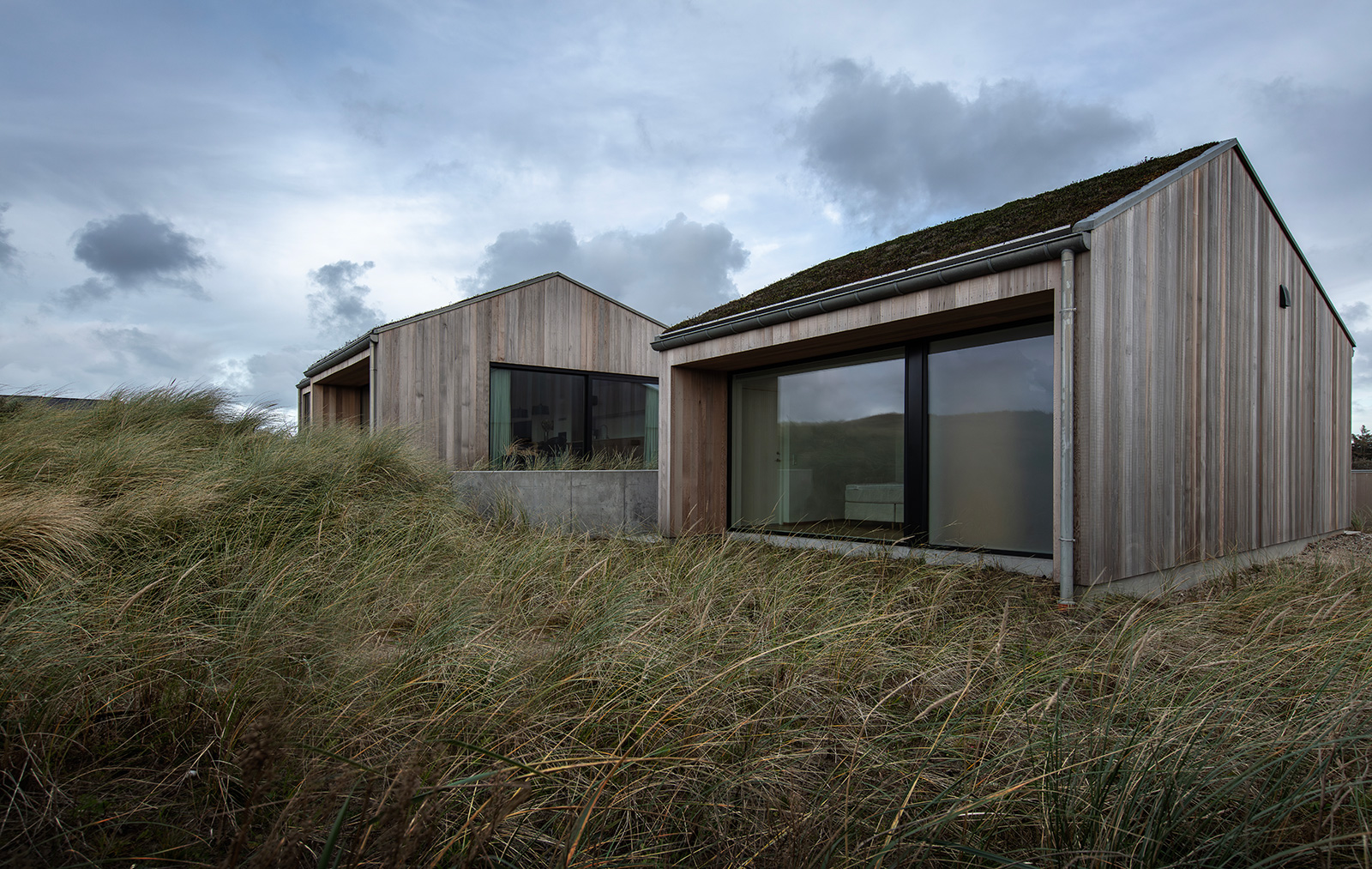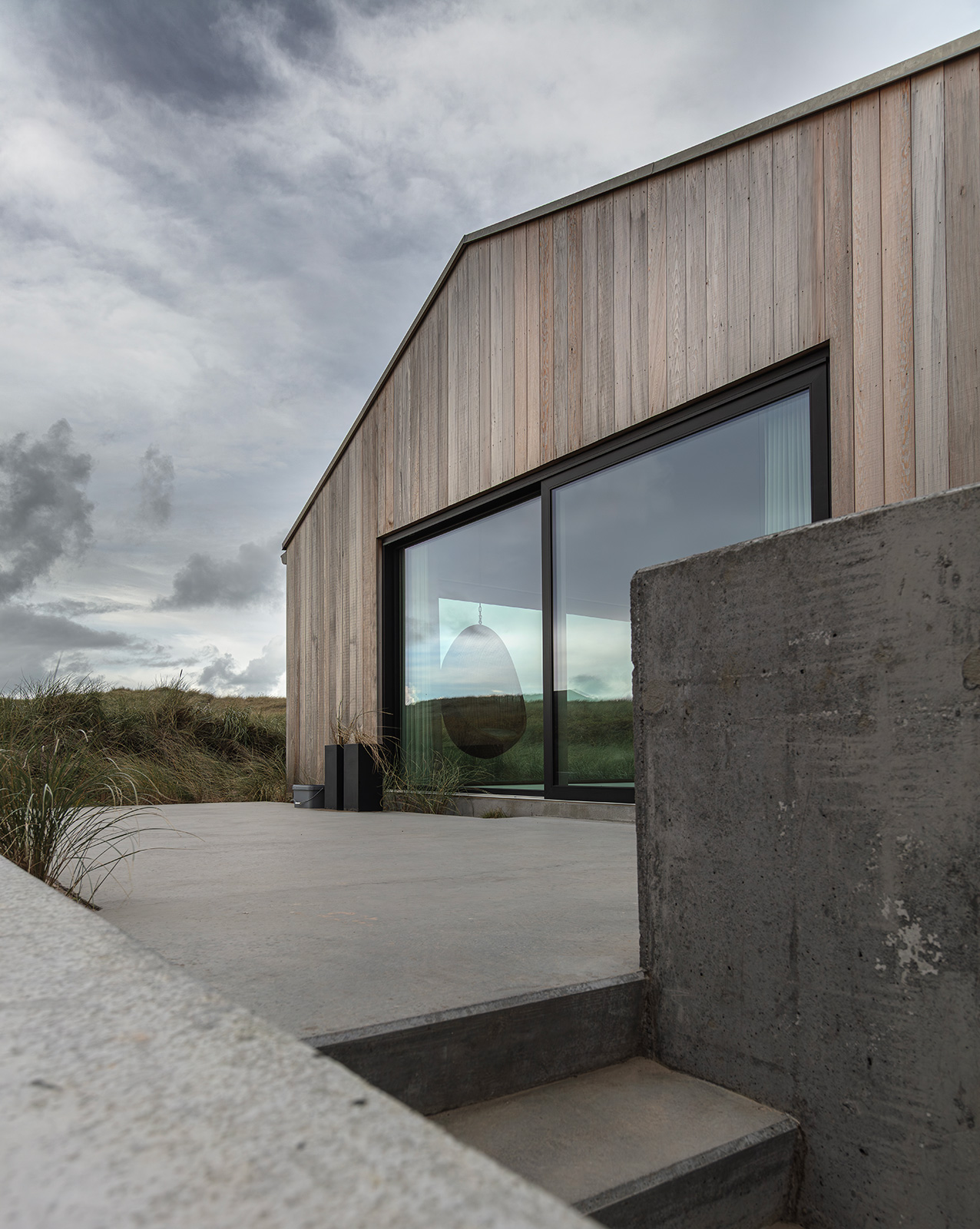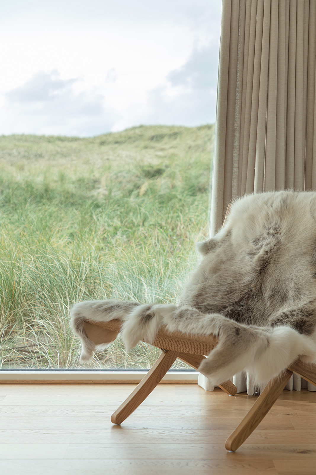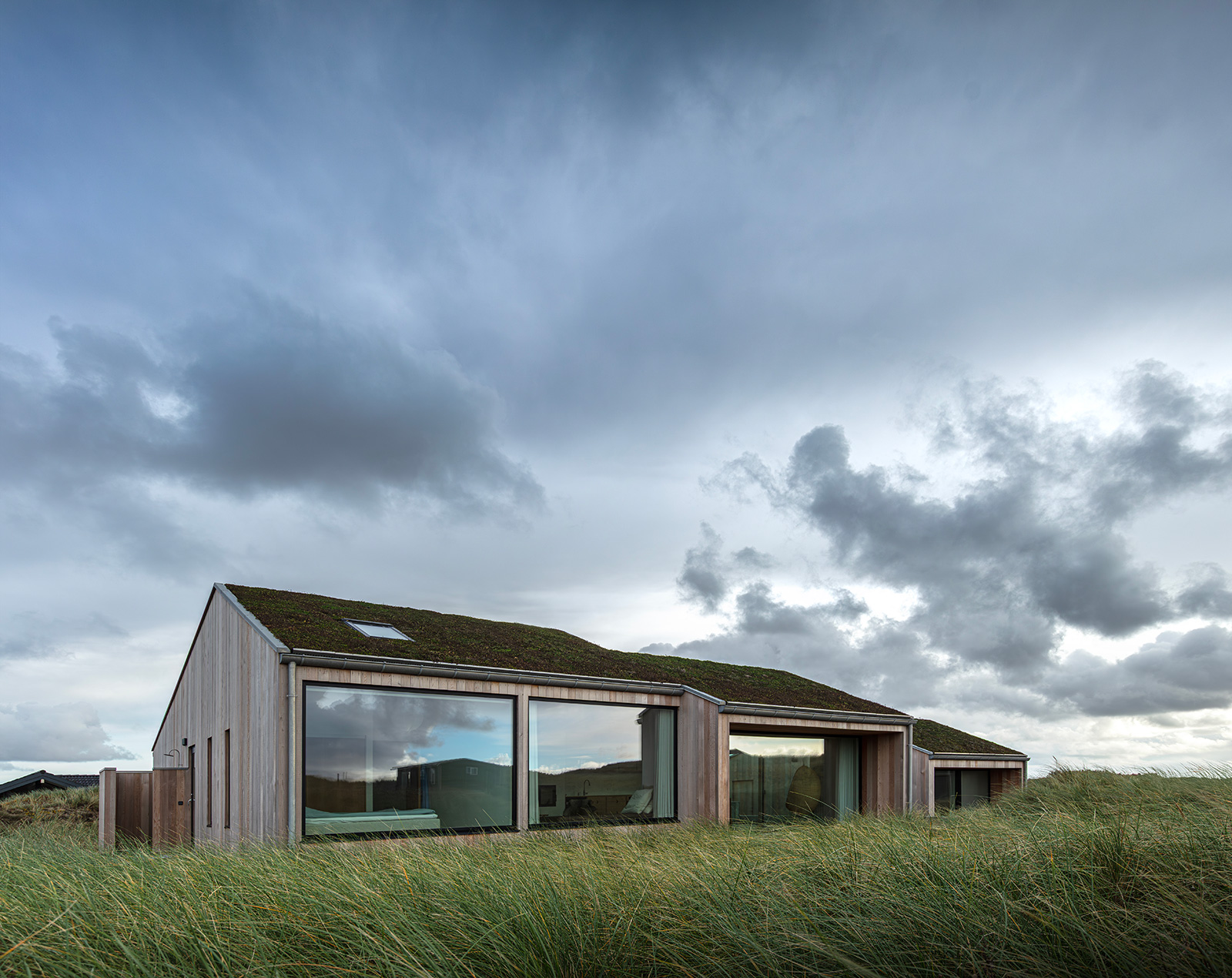 Et smuk arkitekttegnet sommerhus beliggende helt ude i klitterne. Store smukke vinduespartier, der inviterer strandsandet og marramgræsset helt indenfor.