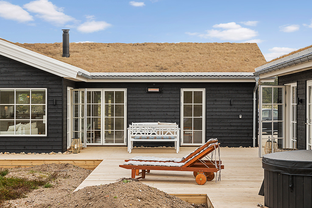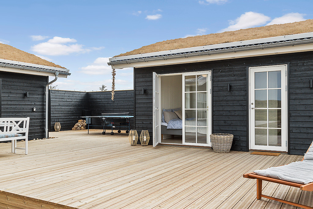Sommer og sol – huset og opholdet er i ”vinkel”. Masser af lys og miljø i samarbejde med naturens kræfter. Et moderne fritidshus for familien, der ønsker sig noget anderledes og frisk. Her er der plads til begejstring og udfoldelse.