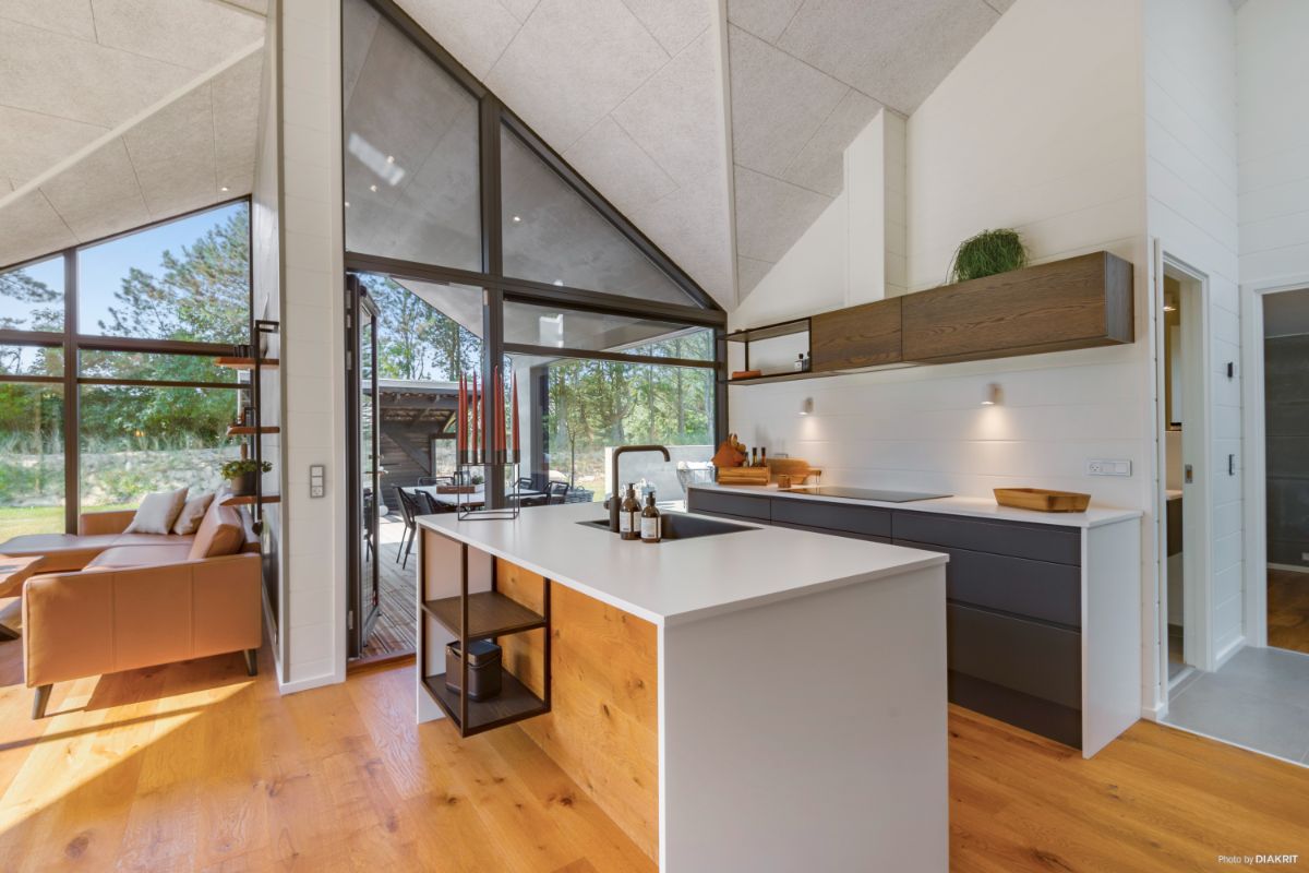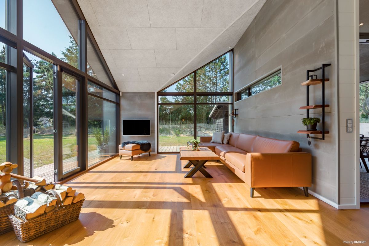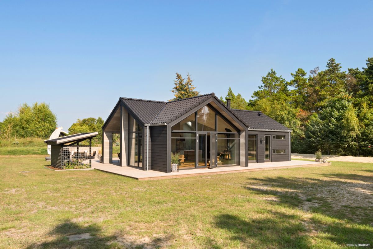 Et sommerhus er ideelle til de smalle grunde, hvor udsigten er i højsædet. Den fulde glasgavl fra væg til væg kan noget helt særligt. Med udgang til begge sider fra køkken/alrum er der muligheder for at finde en solrig terrasse hele dagen.