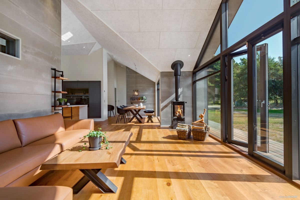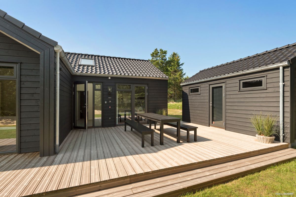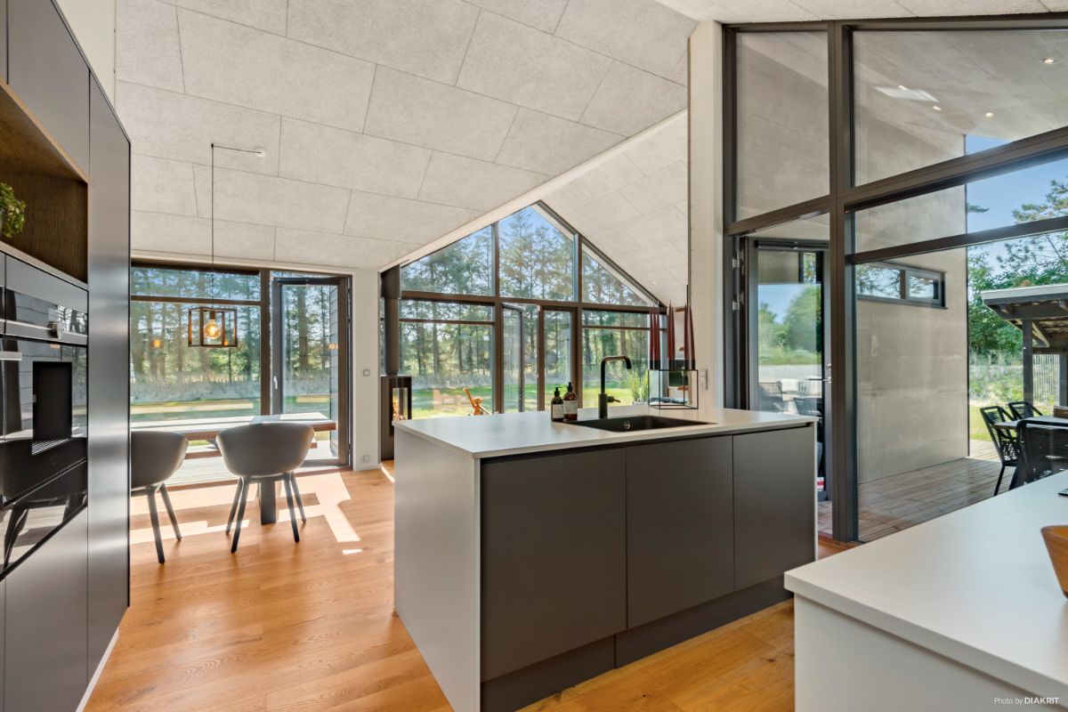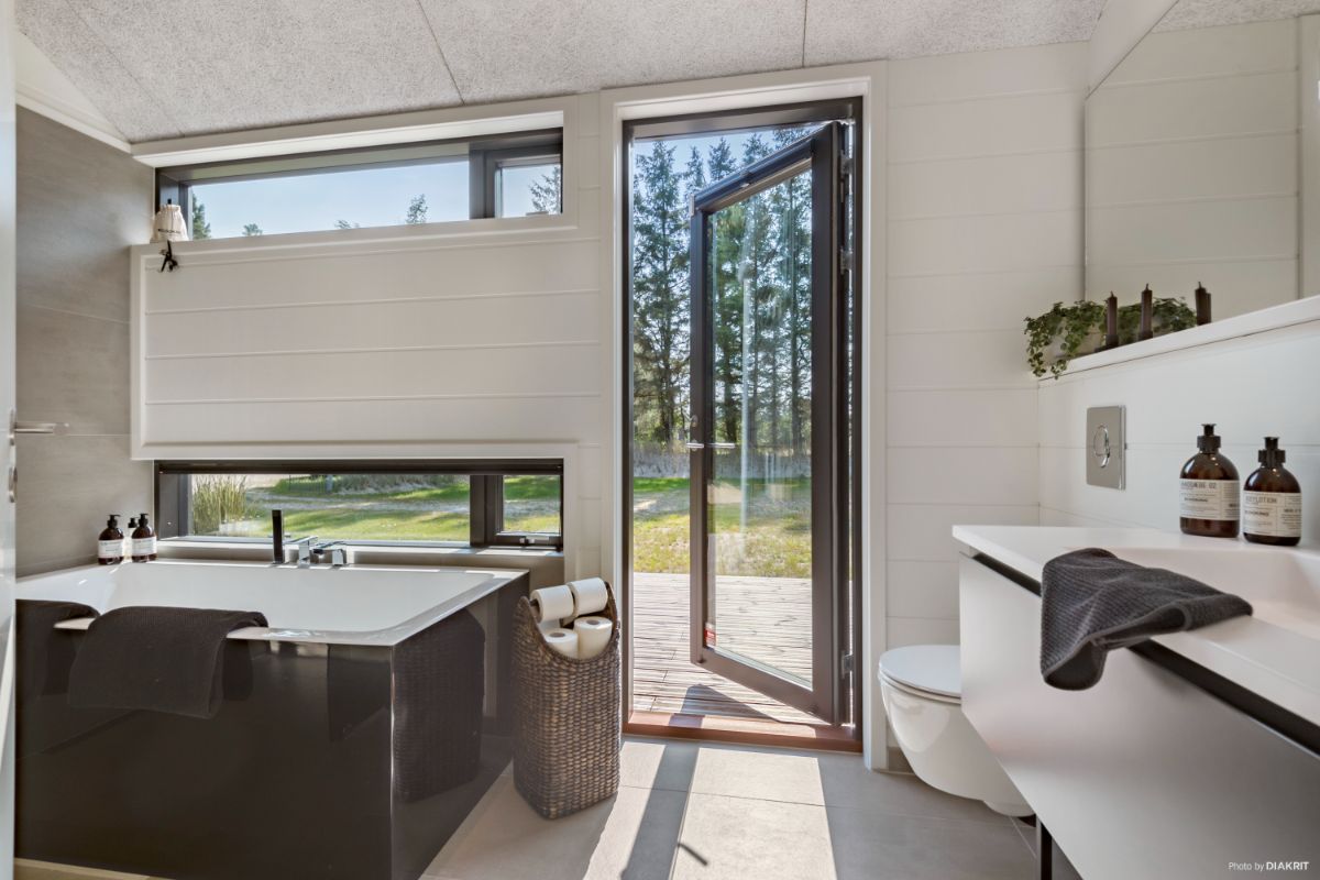 Et sommerhus er ideelle til de smalle grunde, hvor udsigten er i højsædet. Den fulde glasgavl fra væg til væg kan noget helt særligt. Med udgang til begge sider fra køkken/alrum er der muligheder for at finde en solrig terrasse hele dagen.